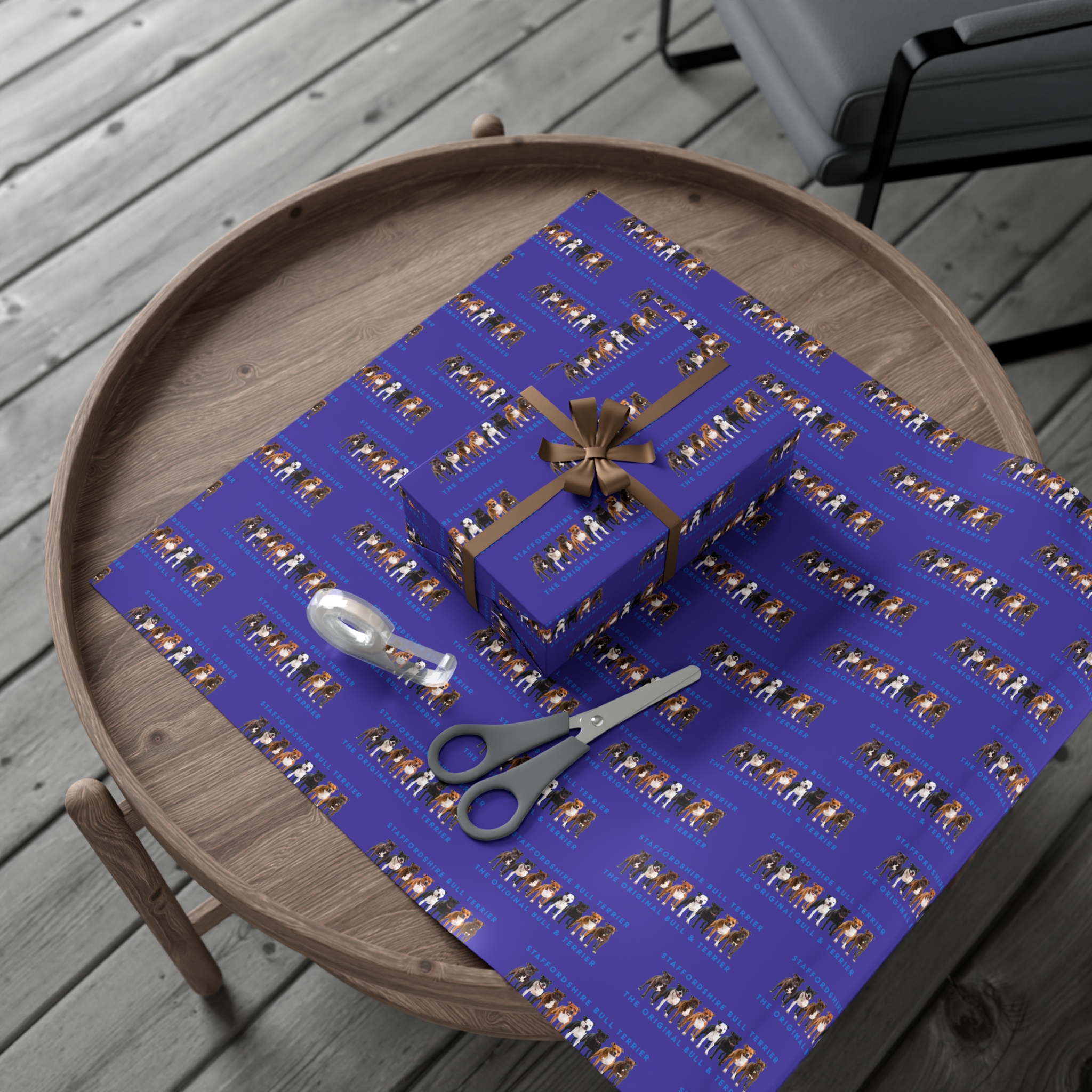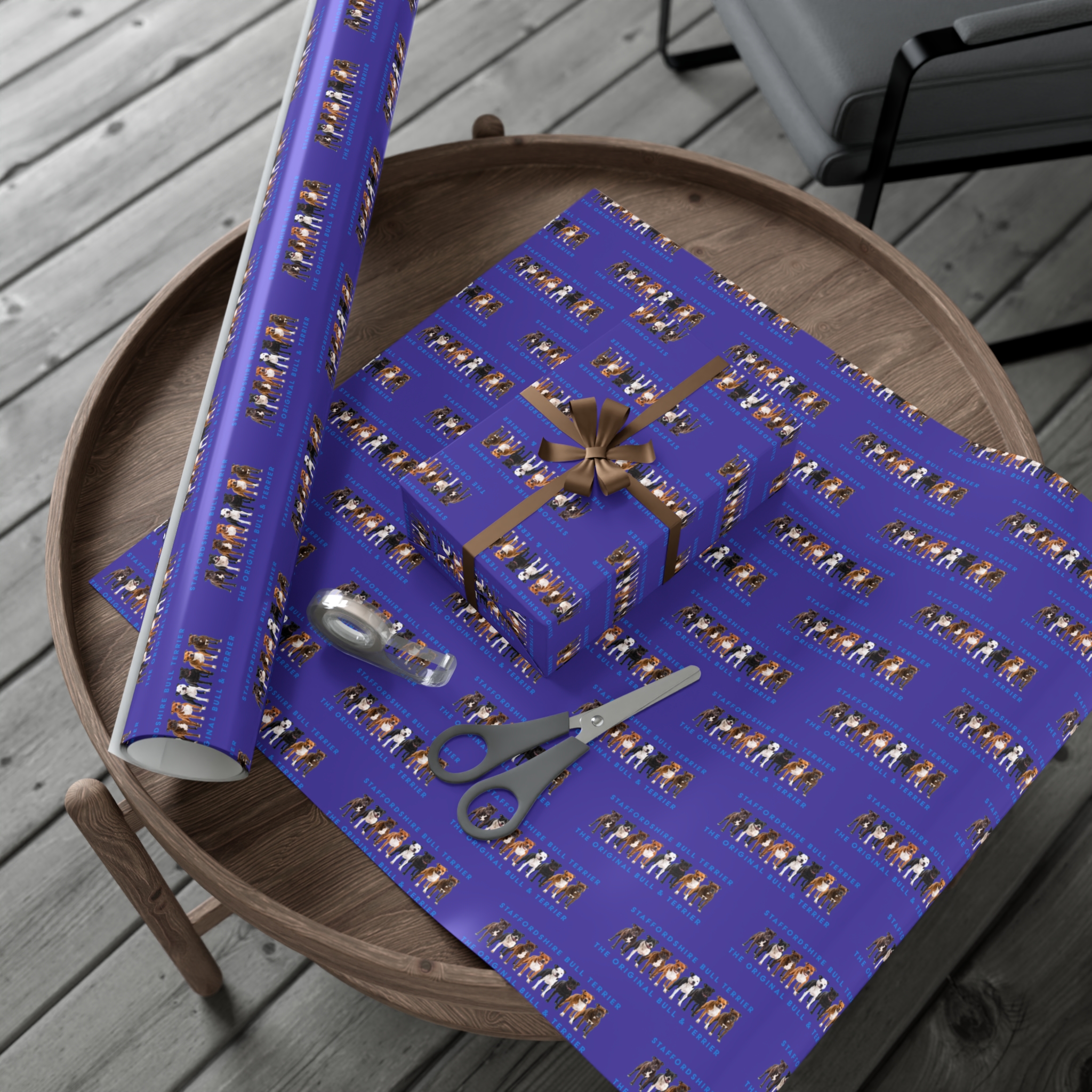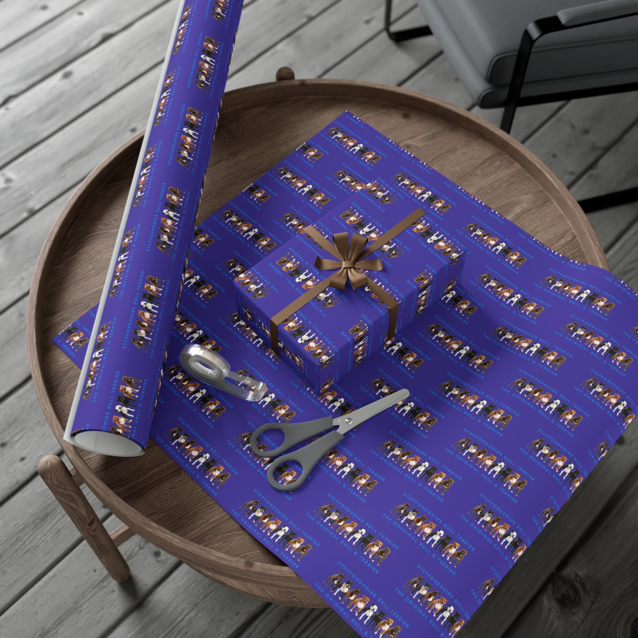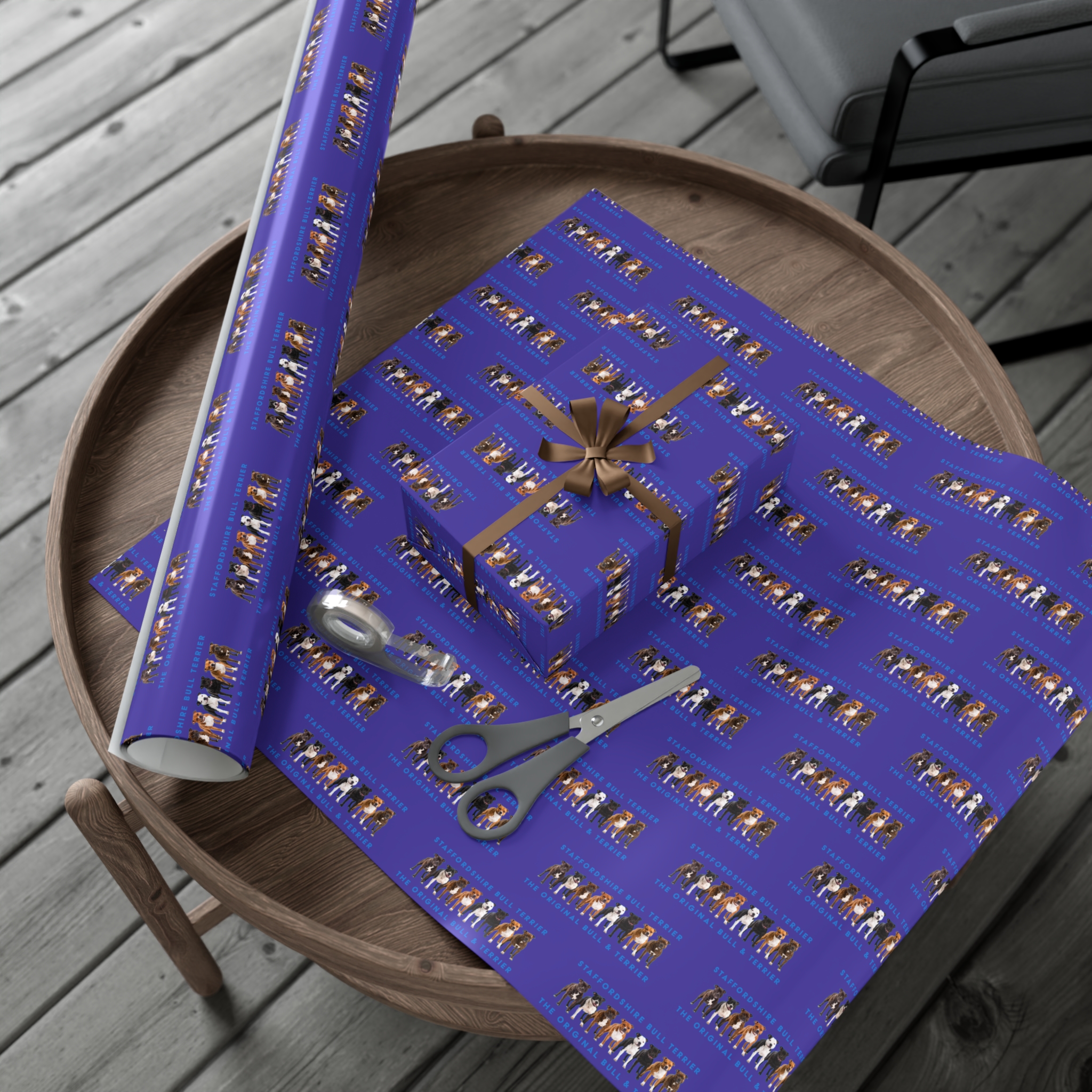Make any gift bring an even wider smile to the receiver with this Stffordshire Bull Terrier gift wrap paper. Available in two paper finishes (satin, matte), this wrap lets you choose what best fits your audience’s needs. Each sheet is printed using GreenGuard UL Certified inks and the blank paper is made in the USA under strict quality control.