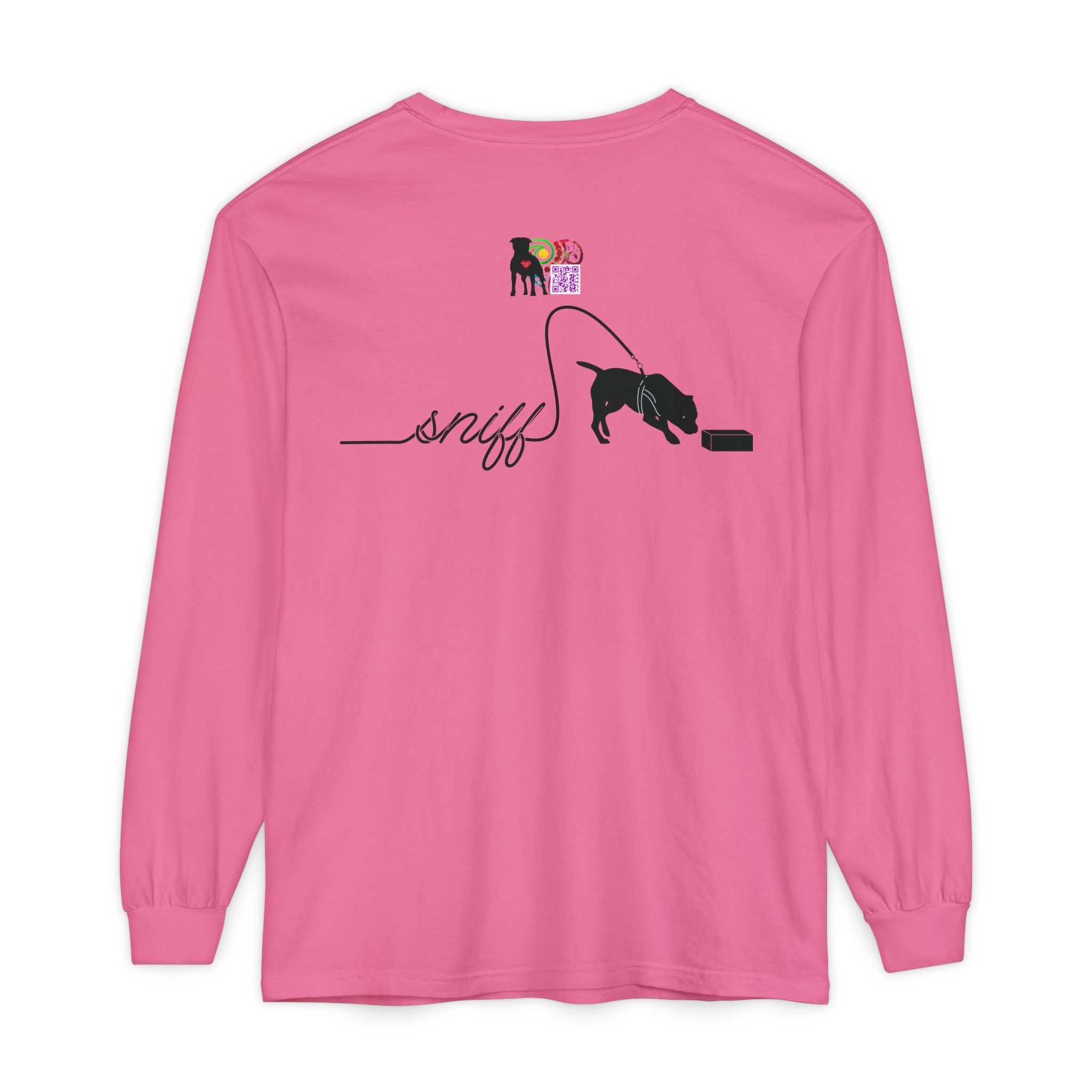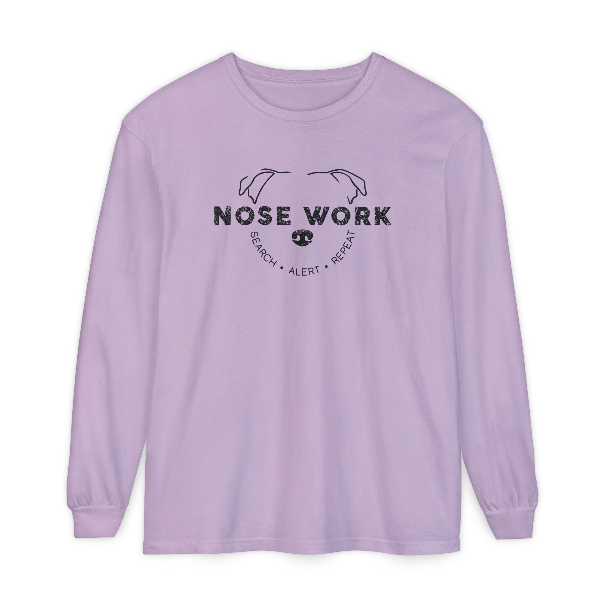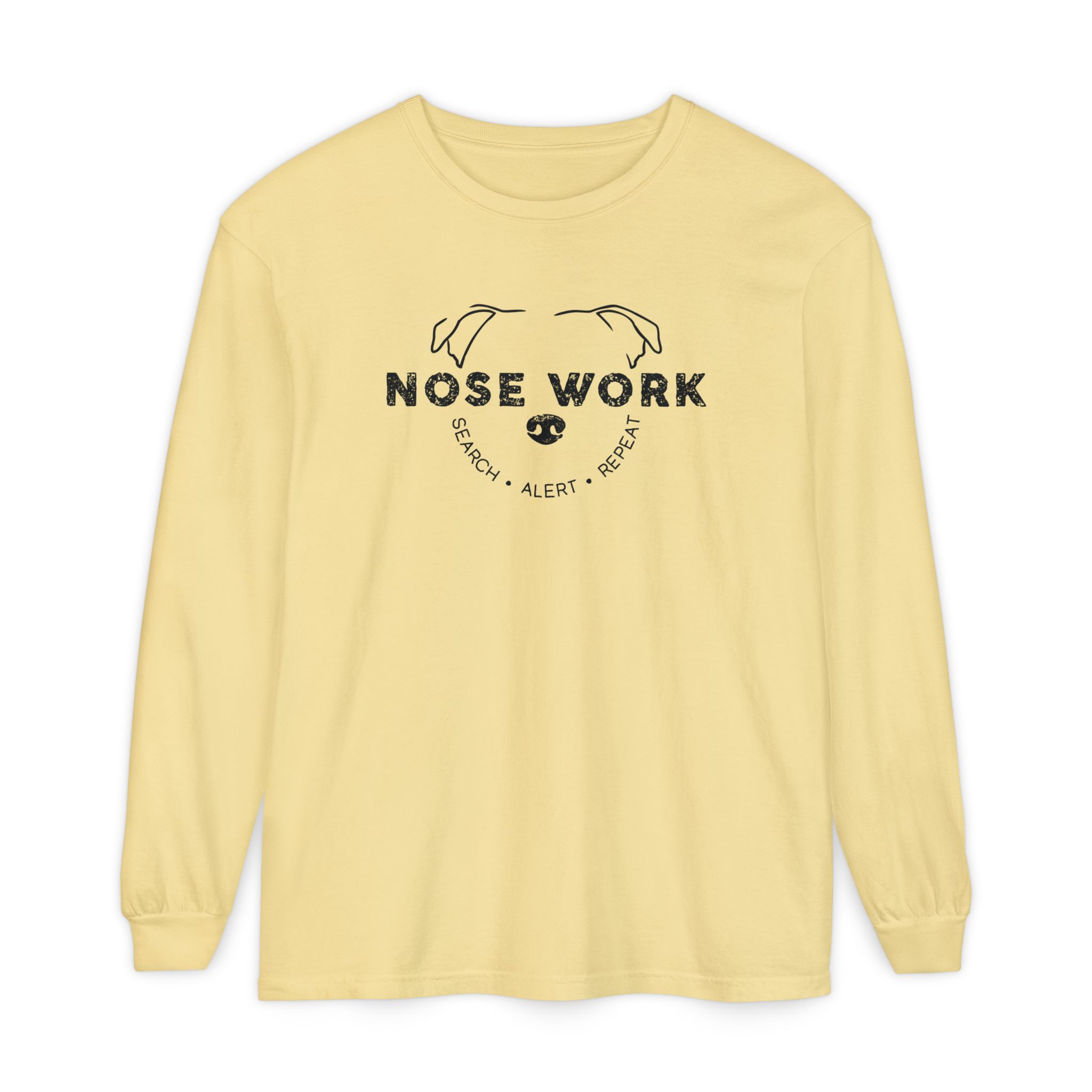 It’s back! Nosework long sleeve T’s! In lots of fun colors! Made with 100% ring-spun cotton, these long-sleeve shirts come packed with softness and style. Each tee features garment-dyed fabric and comes with a relaxed fit for total comfort in any casual setting.
