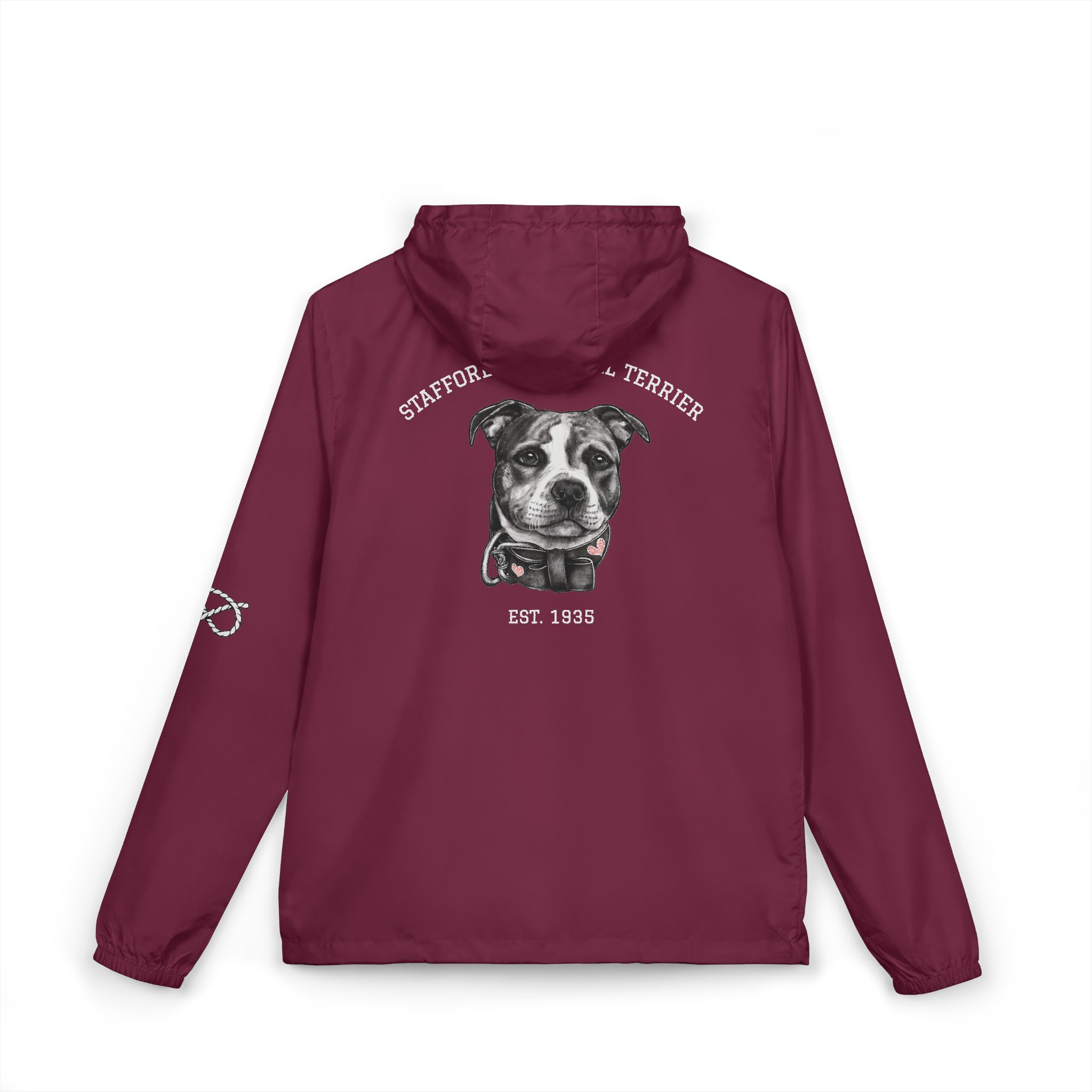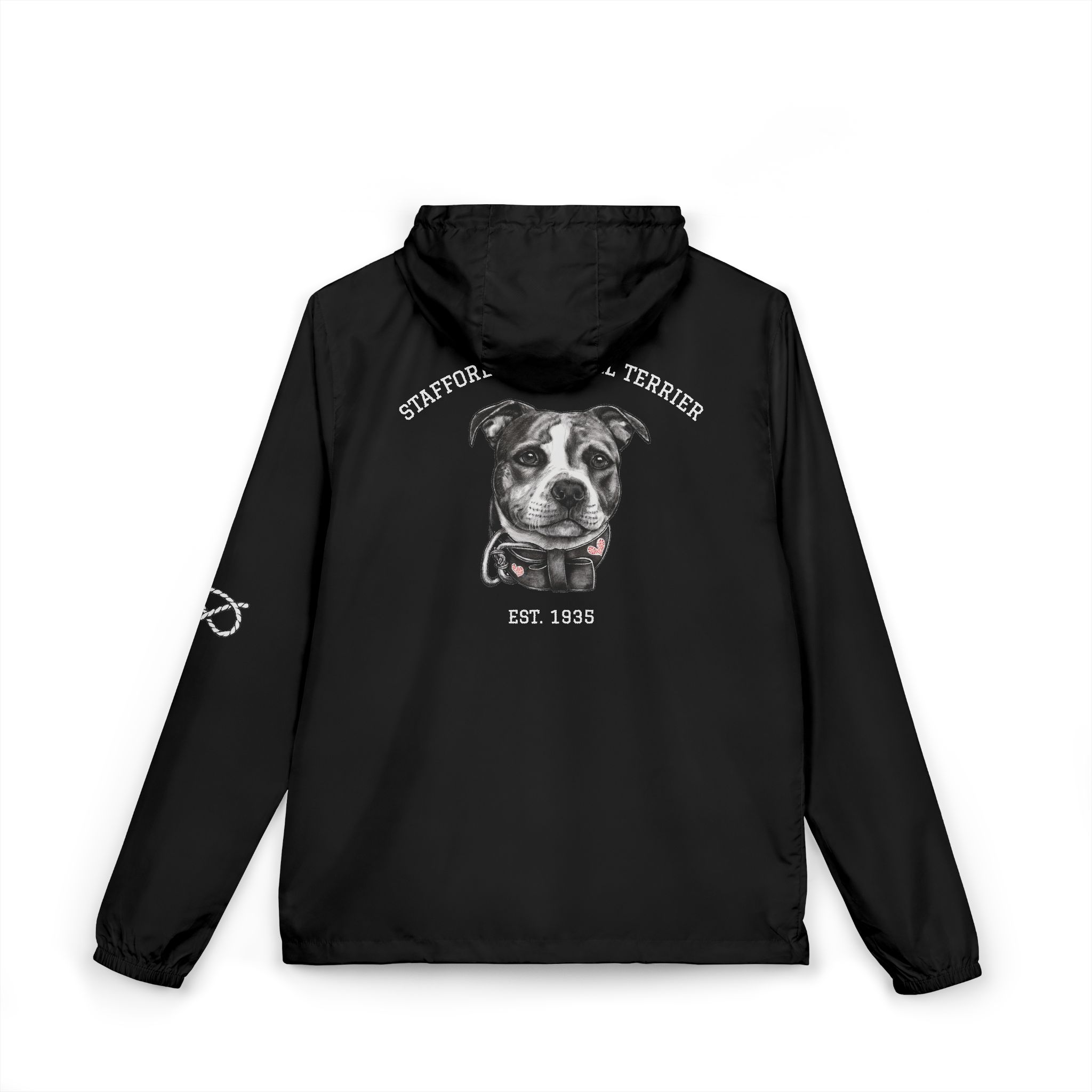 Printed with our TSK original designs on front pocket area, back and left sleeve you will be braving the weather in Stafford style.